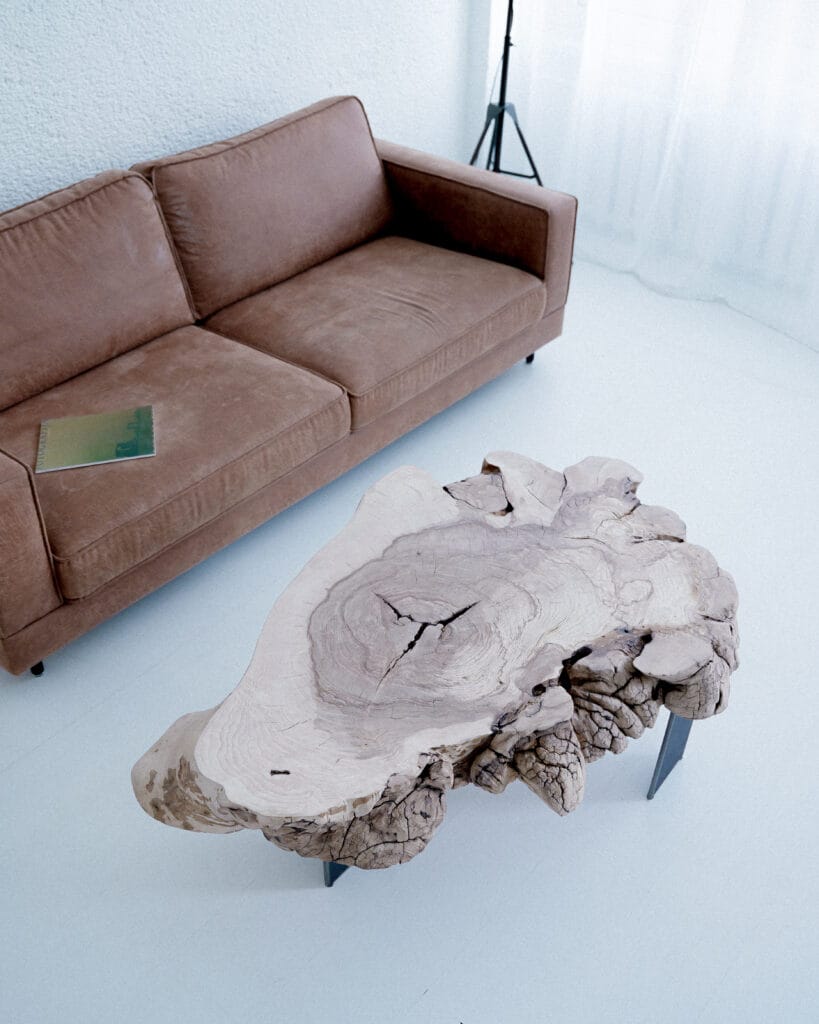 We fill this space with tables made from wood that was destined for biofuel. It is wood with all its scars, growth defects and irregularities – what the industry calls “defects”. Just as a person who comes to the clinic may feel “broken” or “imperfect”, the material we use also has its own “traumas”.