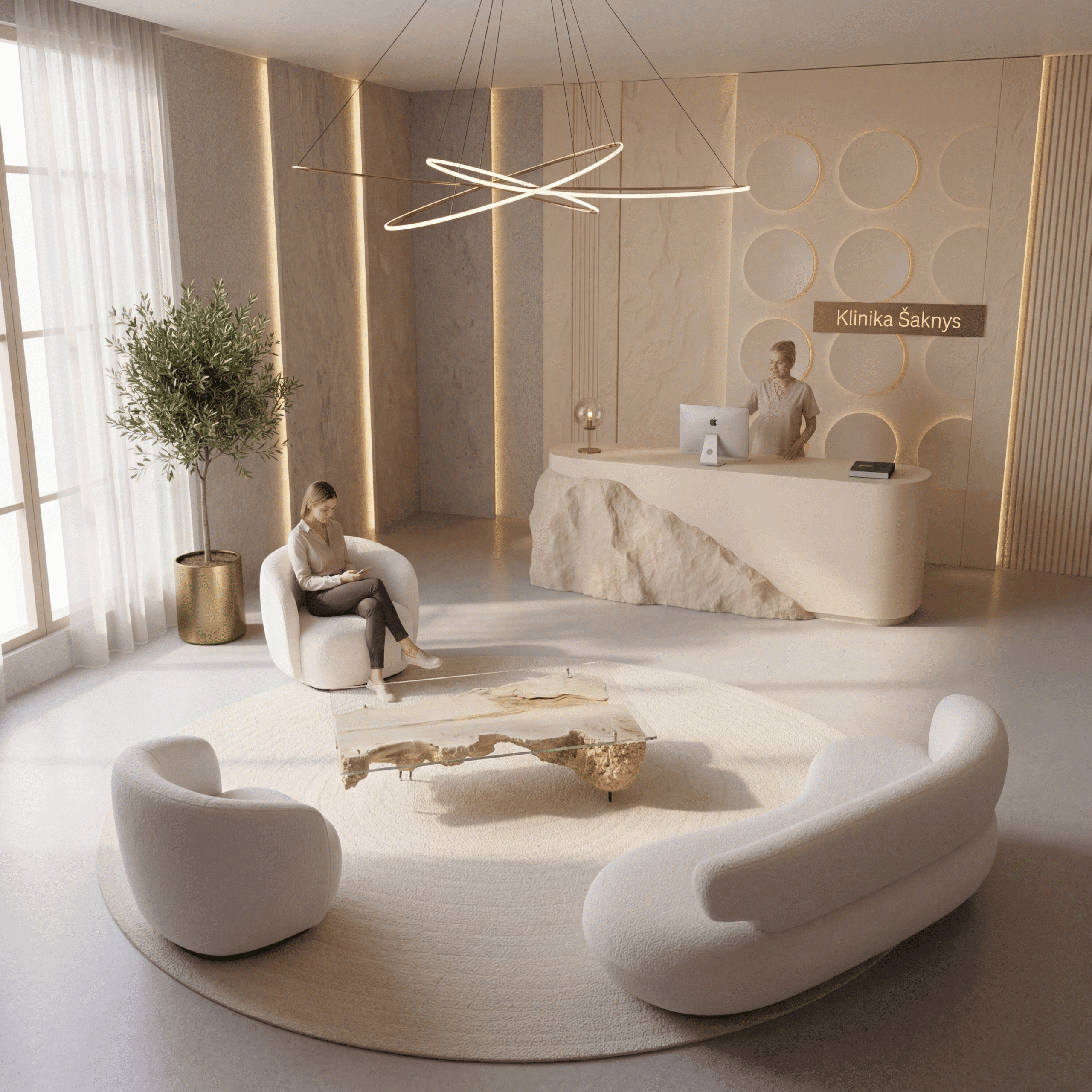 The goal was to create a holistic clinic environment that would greet a person not with coldness, but with the forms of nature. We wanted to show that healing does not begin with a conversation in the office, but from the moment you step through the door. The environment here is not a decoration – it is part of what heals.