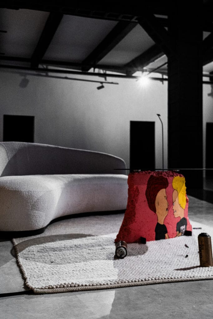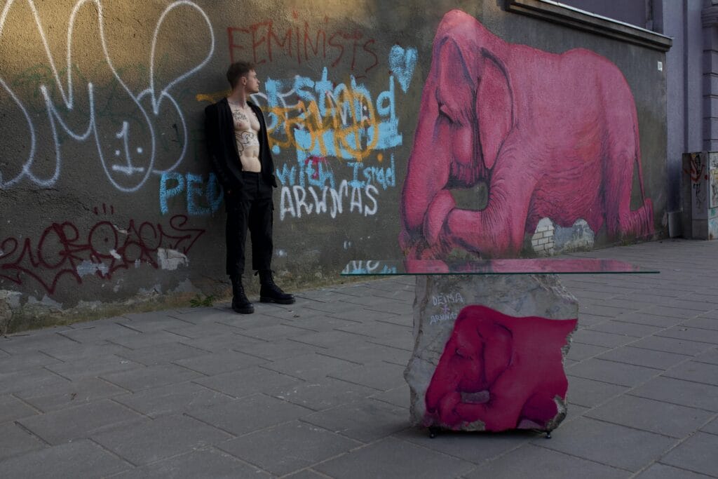 Norėjau sukurti ne tik ekspoziciją, bet ir gyvą miesto patirtį – kur Kaunas tampa parodos dalyviu. Visa žaliava, naudota parodai – betono žiedai, stiklo fragmentai, grafičiai – buvo surinkta Kauno centre, 5 km spinduliu. Net grafičiai – gatvės meno sluoksniai su tikromis miesto istorijomis – buvo perkelti į ekspoziciją. Tai ne baltos sienos, o tikrumas, kuris šneka, kuris turi tekstūrą, sluoksnius ir gyvybę. Ši paroda laužo nusistovėjusius modelius, ištrindama ribas tarp dizaino, gatvės, meno ir žmogaus patyrimo.