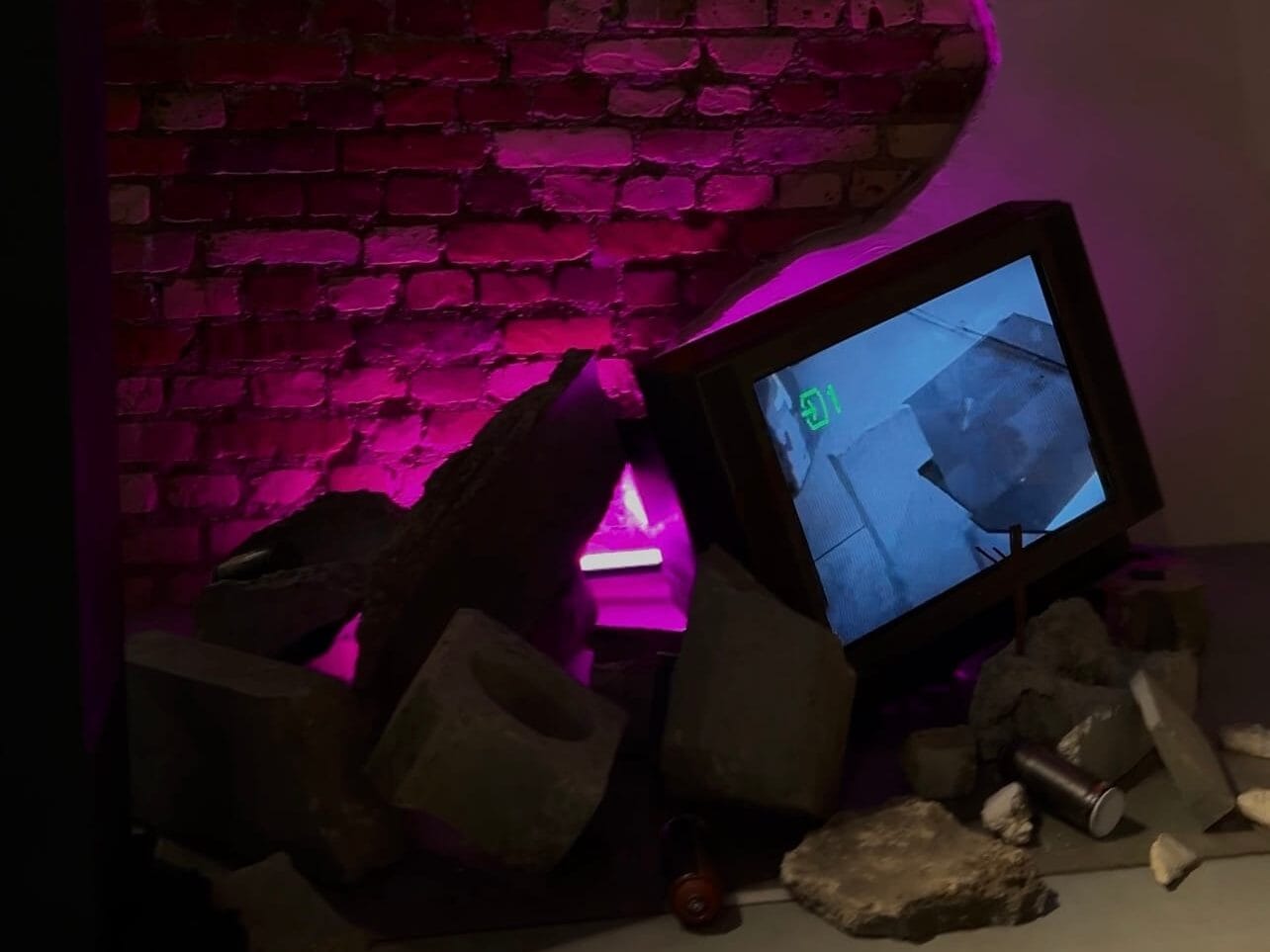 Tarp instaliacijų buvo ir senas televizorius, kuris transliavo visą projekto gamybos procesą. Tai buvo ne tik dokumentika, bet ir tiltas tarp nematomo darbo ir matomo rezultato. Tarp idėjos ir fizinės jos išraiškos. Tarp užkulisių ir scenos.