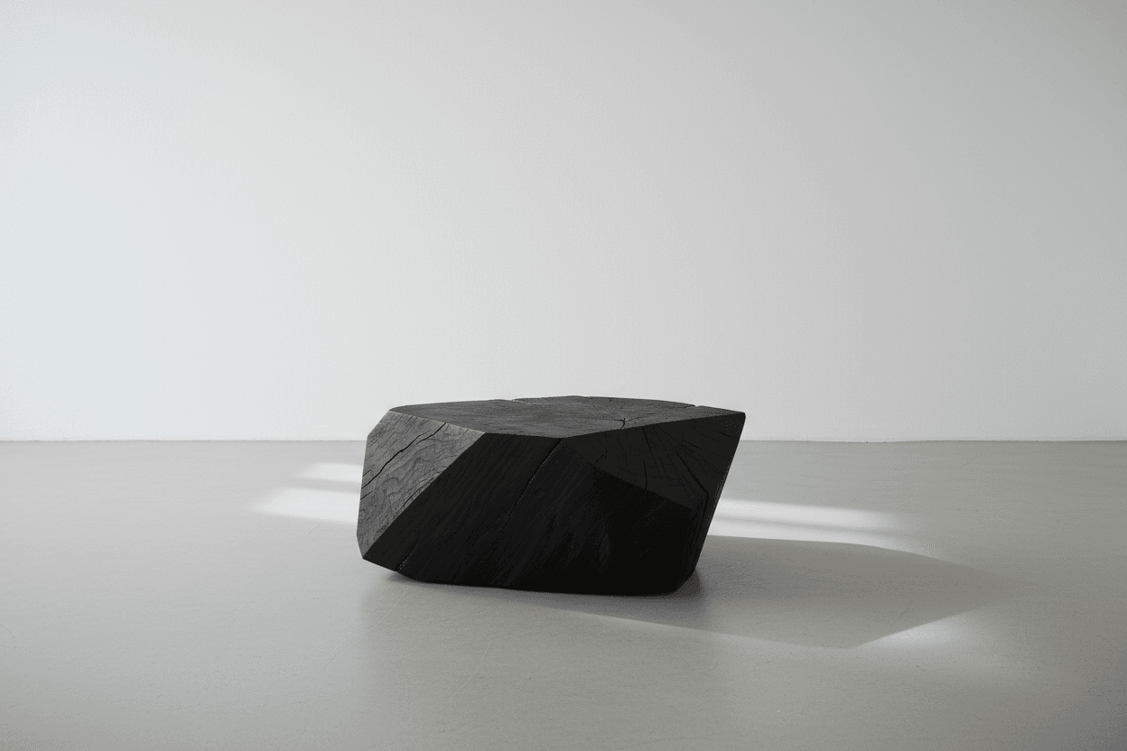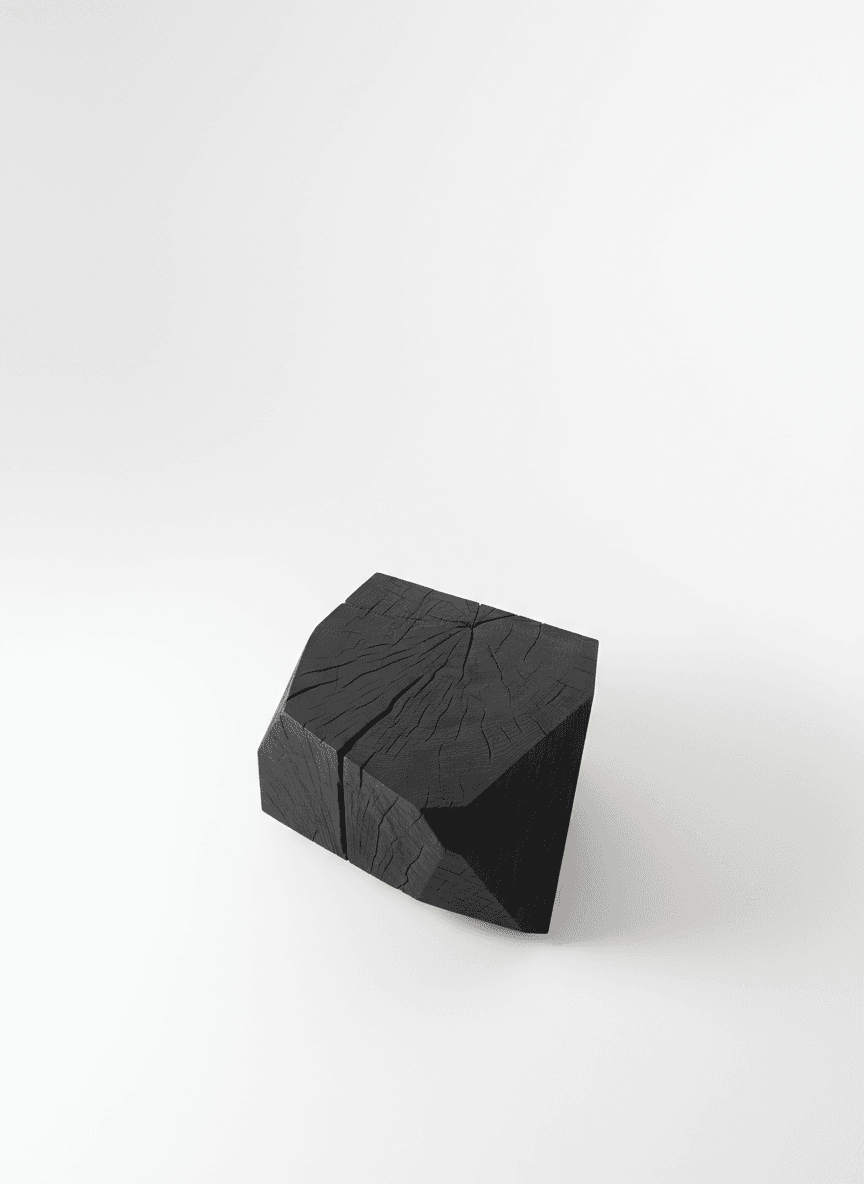 The forms of this piece are partly shaped by nature. The wood surface had begun to rot, so we trimmed it away and thus saved it from ending up at the biofuel yard. The patterns, lines, and fire marks give a feeling of modernity within nature.