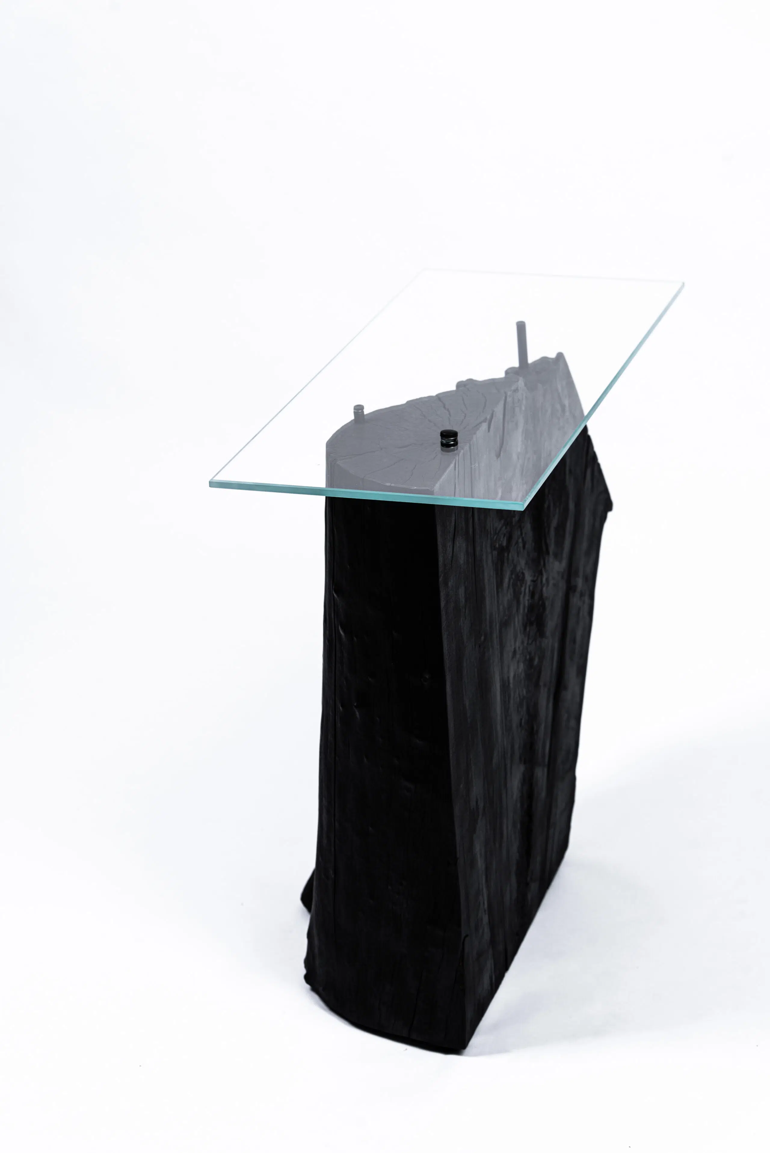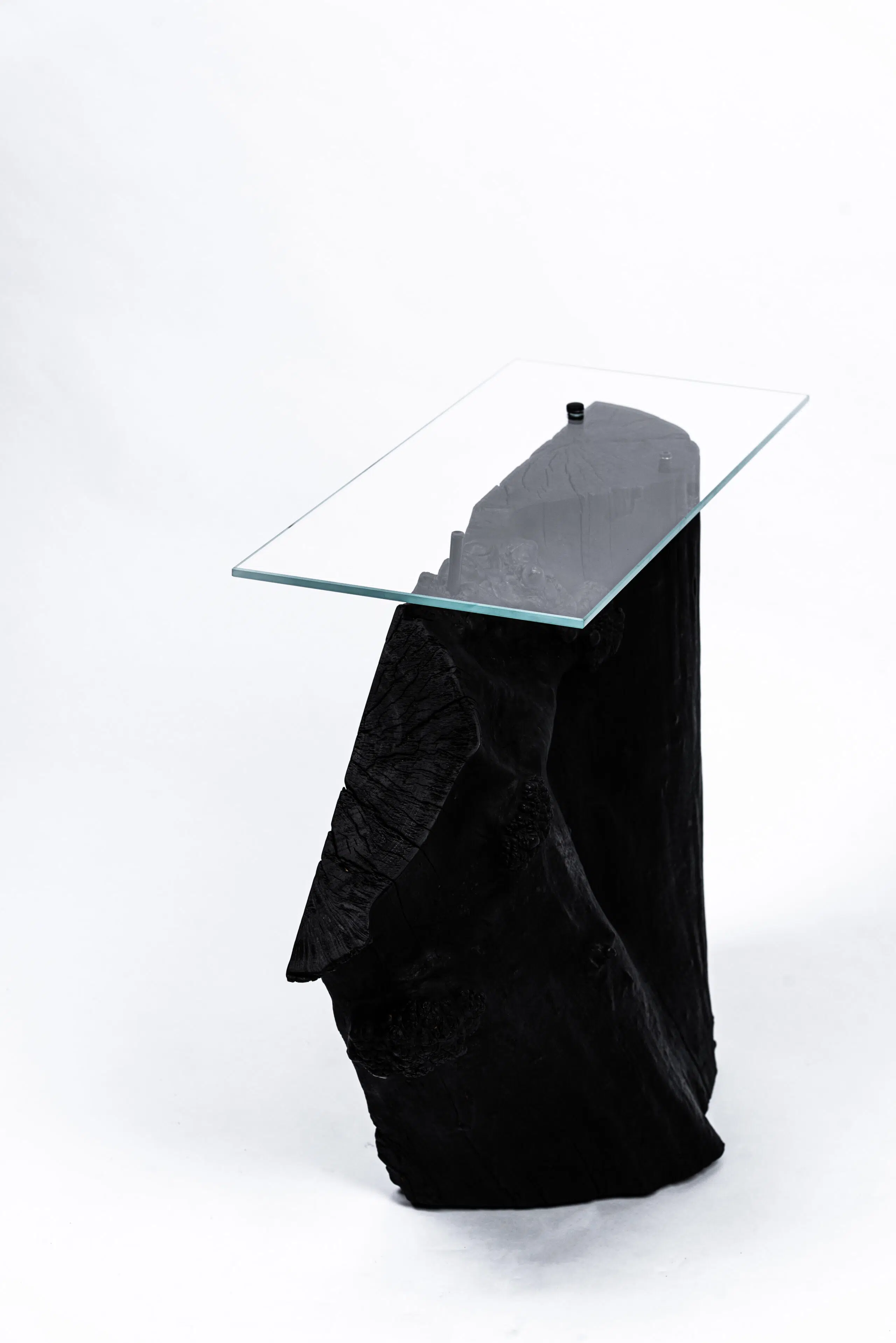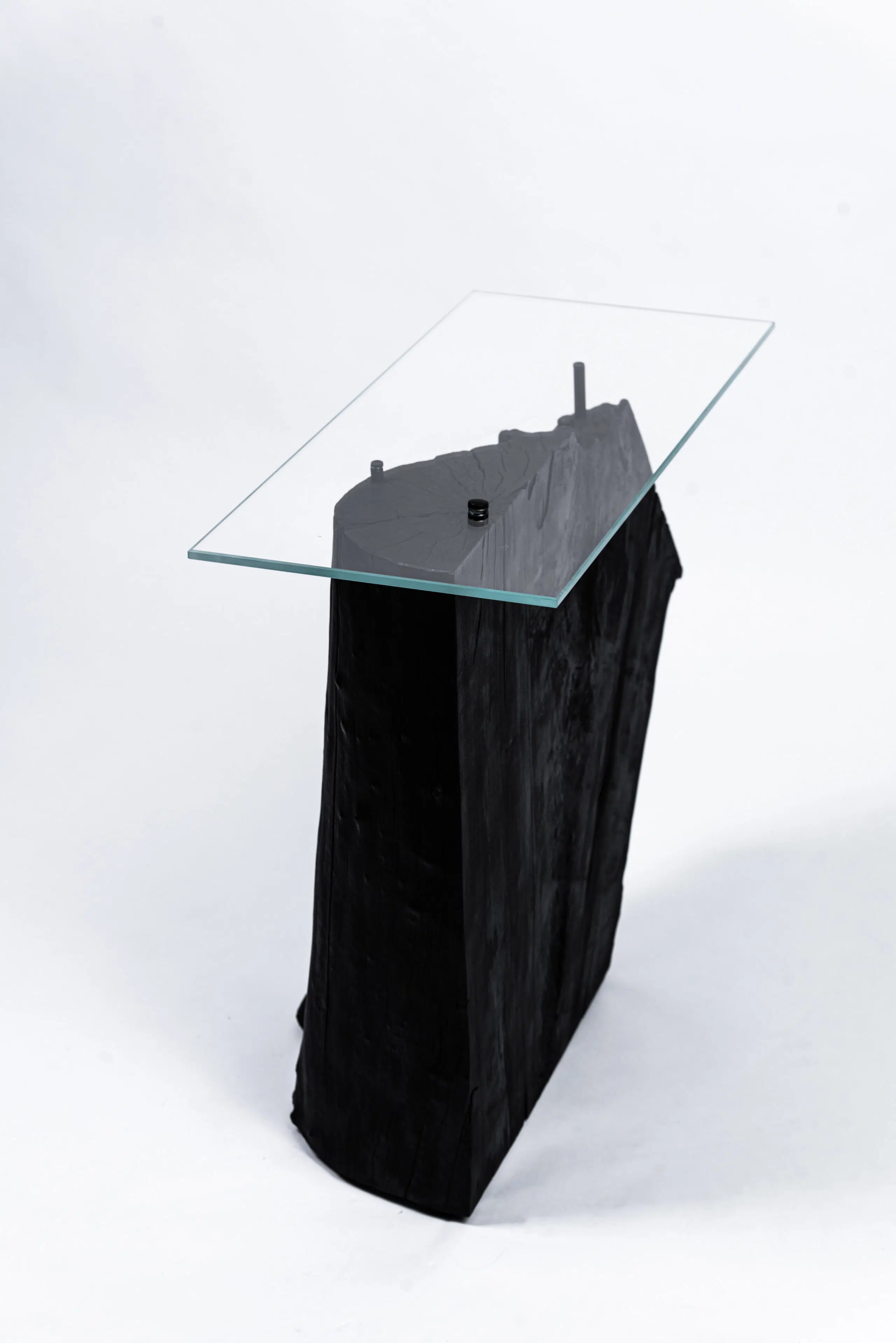 Šis staliukas gimė iš medžio, kuris kažkada buvo tiesiog išmestas kaip nereikalingas. Jis perpjautas išilgai, paliekant visą natūralią formą – su visais nelygumais, tekstūromis, plyšiais. Mediena tik apdeginta, kad išryškėtų jos charakteris ir istorija.